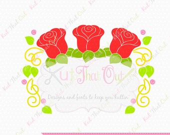 Free Fonts Download, Exclusive Princess Rose Trio Frame SVG and DXF File, Shown with our “Curtsy Monogram” font NOT included.