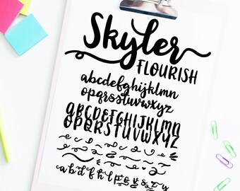Free Fonts Download, SVG Font INSTANT DOWNLOAD “Skyler Flourish” script svg font, flourish font, cursive font, brush font, svg font, hand lettered font, dxf font.